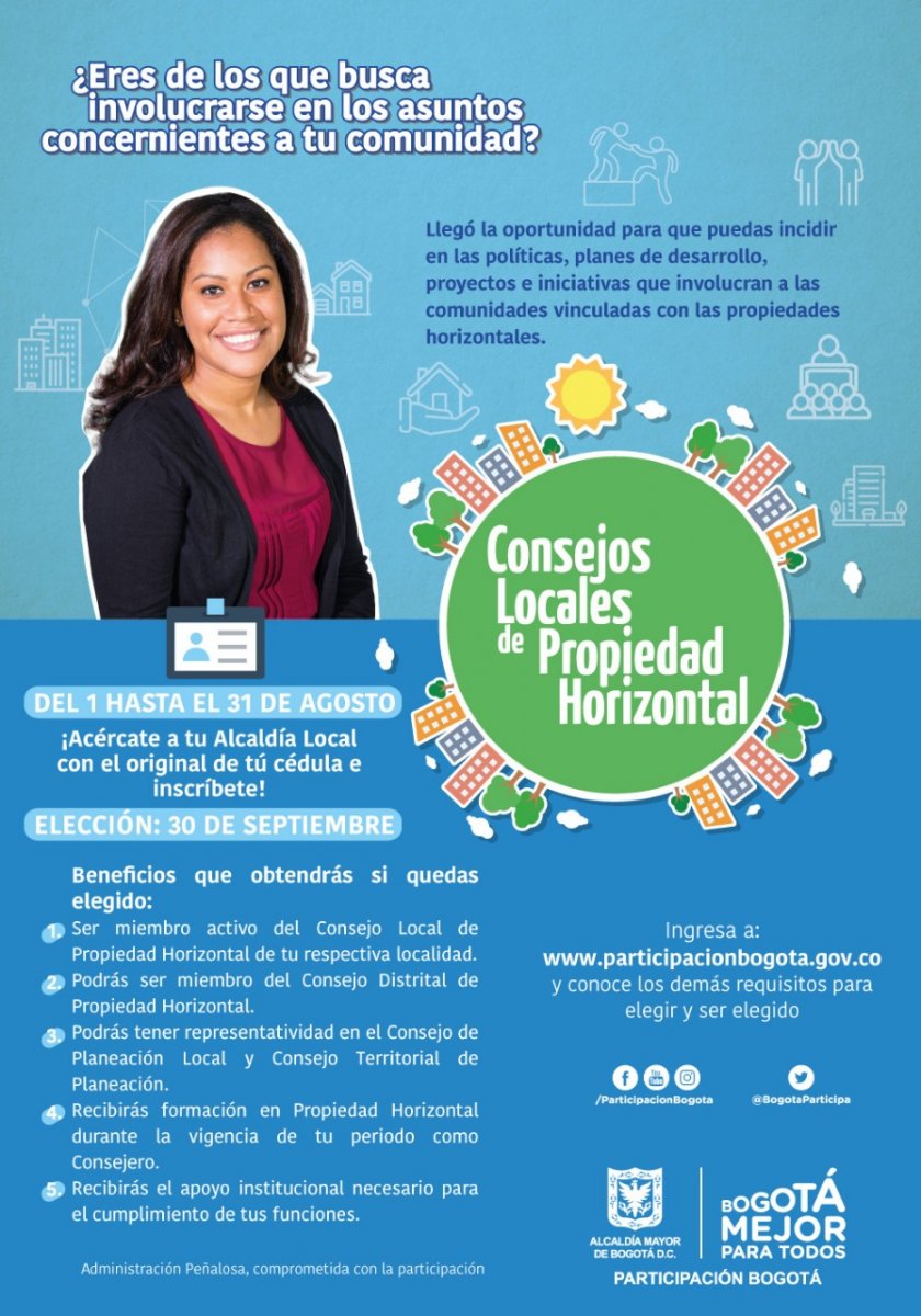 Llegó la oportunidad para que puedas incidir en las políticas, planes de desarrollo, proyectos e iniciativas que involucran a las comunidades vinculadas con las propiedades horizontales.