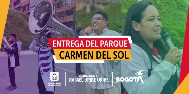 En el marco de una feria organizada por la comunidad para la apropiación del parque, la Alcaldía Local de Rafael Uribe Uribe hizo entrega oficial del renovado Parque Carmen del Sol, una obra que representa una importante inversión de $1.225 millones de pesos y que beneficiará a cientos de familias del sector, promoviendo el deporte, la recreación y la integración social.