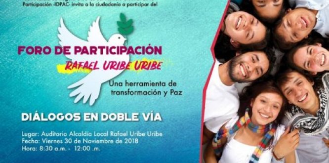 Con la participación del Alcalde Local Juan Sebastián Rivera Galvis se dará apertura al Gran Foro de Participación: Una herramienta de transformación y paz, que tendrá lugar en el auditorio de la Alcaldía Local de Rafael Uribe Uribe, a partir de las 8:30 AM.