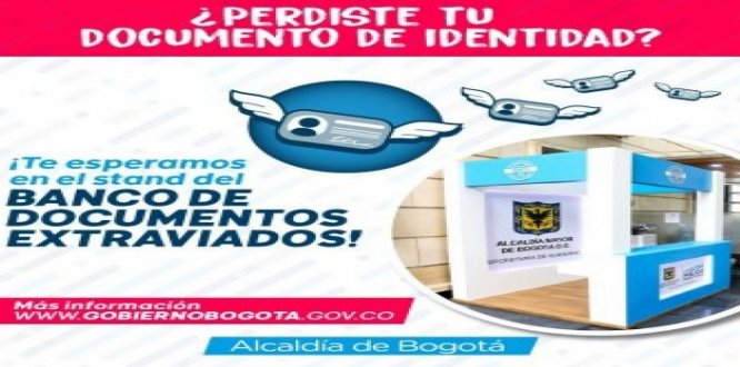 En Banco de documentos extraviados de la Secretaria de Gobierno de Bogotá, se encuentran cedulas, tarjetas de identidad, licencias de conducción, pasaportes, libreta militar, tarjetas de propiedad y tarjetas profesionales, a la espera de ser reclamadas por sus propietarios. Esta semana el Banco de documentos extraviados de la Secretaria de Gobierno de Bogotá se traslada a varios centros comerciales de la ciudad a los que usted puede acercarse para recibir información: