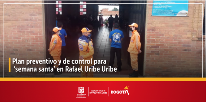 Bogotá marzo de 2021. La alcaldía local de Rafael Uribe Uribe, la Defensa Civil con el apoyo de la Policía Nacional, desarrollan un plan de contingencia para tener control en los lugares donde se desarrollan ceremonias religiosas y actividades propias de la Semana Santa’ en la localidad.